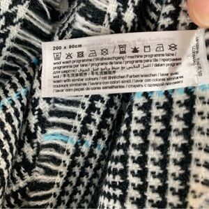Esprit Houndstooth Blanket Scarf Shawl Wrap Black White Fringe Blue Contrast