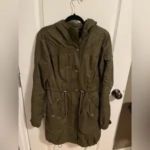 This jacket is a very flattering fit. Adjusts at the waist and bottom. Inside liner zips out and can wear as a vest.