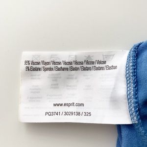 Esprit mock blue short sleeve t-shirt is gently used. Cute neck detail. See measurements & photos for details.