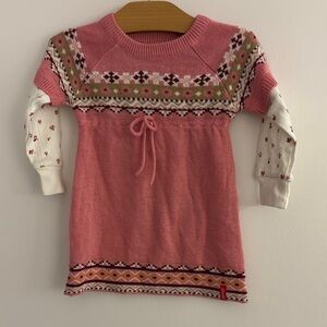 Adorable Esprit kids set. Pink knit dress with cream sleeves. Features floral patterns and bow detail.