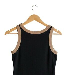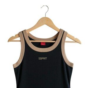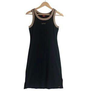 Esprit Ribbed Black & Tan Sleeveless Tank Dress Small Y2K Logo