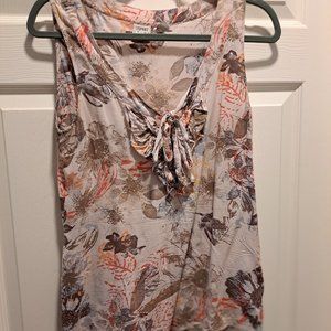 A very light weight esprist blouse with a beautiful pattern on the entire shirt. It fits slightly loose, but is cut in at the waist for a flattering look.