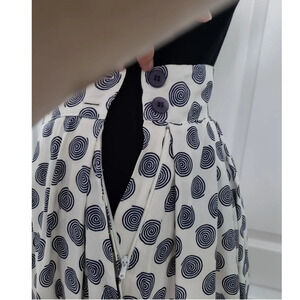Esprit Swirl Polka Dot Pleated Navy and White skirt with pockets