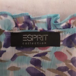Esprit Women's Cap Sleeve Blouse Boho Floral Sheer Ruffle Size Medium
