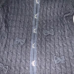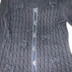 Esprit Womens Cardigan Sweater Sz M,hook Closure,black with butterfly decorat.