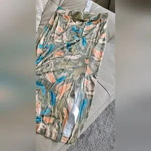 retails $75, super lightweight and stretchy, slit, elasticized waist, viscose, elastane, made in turkey