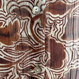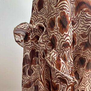 Color and pattern : Brown & rust floral print on ivory; subtle gold metallic threading throughout.