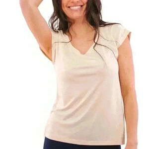 Esqualo T-Shirt Turn Up Sleeve Light Sand Beige Modal Soft Relaxed Women's XL