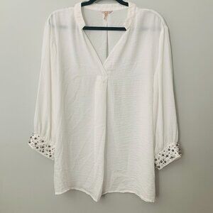 Esqualo White Blouse 3/4 sleeves with pearl details Size US 12