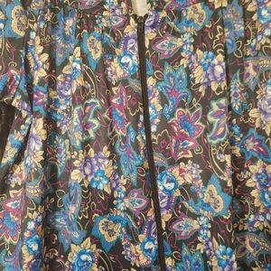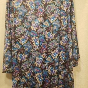 Look stunning in this pre-owned Essential Needs night dress with a beautiful floral pattern. The 3/4 dolman sleeves and round neckline provide comfort, while the front zipper closure adds a touch of style. The garment is made from a silky polyester blend fabric that is lightweight and perfect for any season.