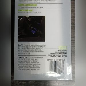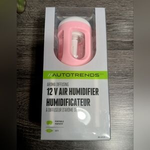 Aroma diffusing 12V air humidifier for your vehicle. Perfect for on the go portable essential oil diffuser in the car, truck or trailer. New in box.