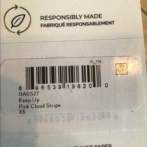 NWT. Excellent quality MPG tank top with built-in bra. Cups are removable. Colour: “Pink Cloud Stripe”. Never worn because I have three. A pretty essential part of my wardrobe, and likely to become essential in yours too!