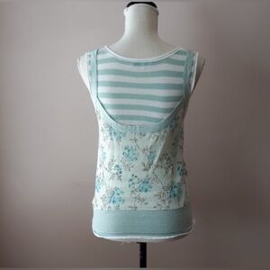 Essentials Antwerp Floral & Striped Tank Top - Blue and Cream