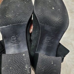 Essentials Black Suede Booties Chunky Heel Zippered Womens Casual Square Toe 5