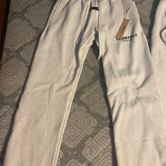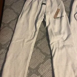 Stylish light gray joggers with Essentials logo. Ideal for everyday comfort.