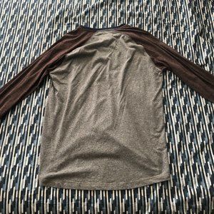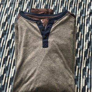 Dark purple, navy blue collar, salt and pepper long sleeve tee. Perfect for summer. Size medium. No stains or tears.