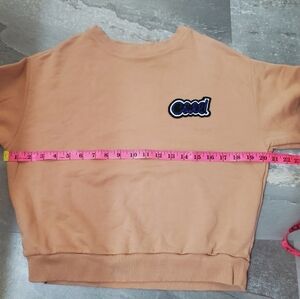 Essentiel Antwerp "Chill!" Long Sleeves Sweater. Pinkish Nude. Beaded (Blue & Black) / Embroidery (Black & White) Logo on the chest. Size S (Essential Antwerp size 1), see pictures for measurements. Oversized fit. Slightly cropped. Excellent condition. No stain, no rip. Non smoking house.