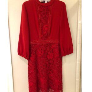 Essentiel Antwerp Vibrant Red Guipure Lace Dress - 3/4 Sleeves