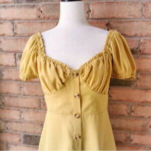 Essue sweetheart neck mustard yellow puff sleeve milkmaid dress
