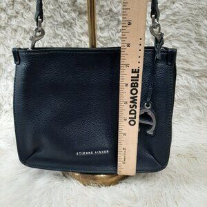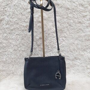 Etienne Aigner Dark Gray Leather Magnetic Closer Crossbody Bag w/ Charm