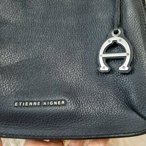 Check out this Etienne Aigner Dark Gray Leather Magnetic Closer Crossbody Bag w/ Charm in very great pre-owned condition. no rips or stains on the leather, minor wear on the hardware, no rips or stains on the lining the bag is very handy perfect for any occasion.