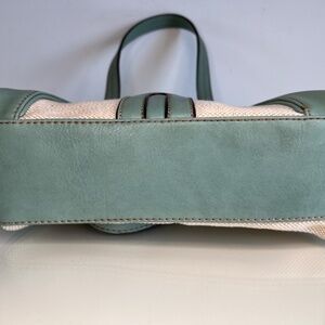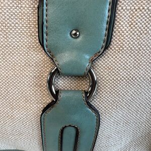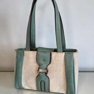 Etienne Aigner Handbag Purse Wicker Teal Blue Leather 9”