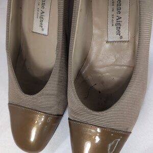 Etienne Aigner Kitten Heels Brown Tan Ribbed Taupe 8 Leather Italy Women Vintage