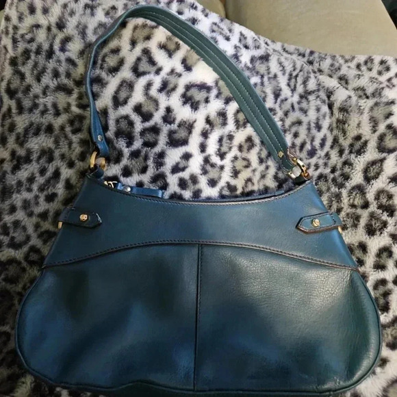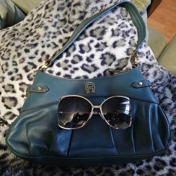 Etienne Aigner | Teal Leather Handbag with Gold Tone Hardware - Lots of pockets!