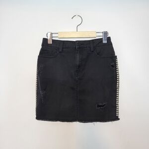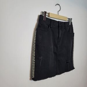 Woman's black high waist skirt, with studd details on the side seam, sexy fitted skirt with fray hem