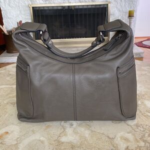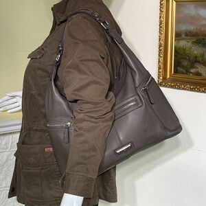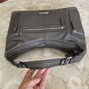 In excellent preowned condition beautiful grey leather shoulder bag from Munich brand Etienne Aigner.