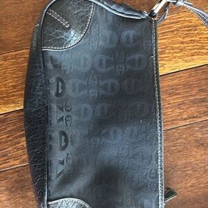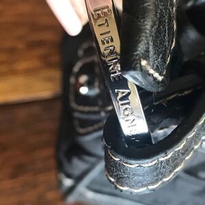 In excellent condition, vintage Etienne Aigner leather and monogrammed cloth small hobo style handbag. Clean interior, no marks, scuffs or imperfections.