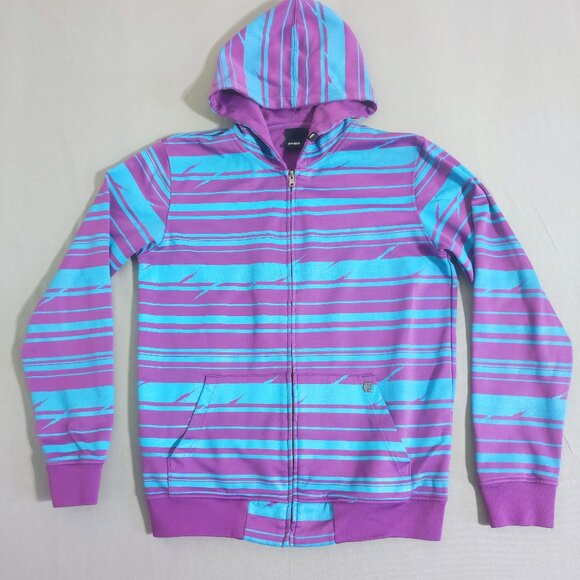 Etnies full zip kangaroo pockets hoodie in purple and blue colour, striped pattern