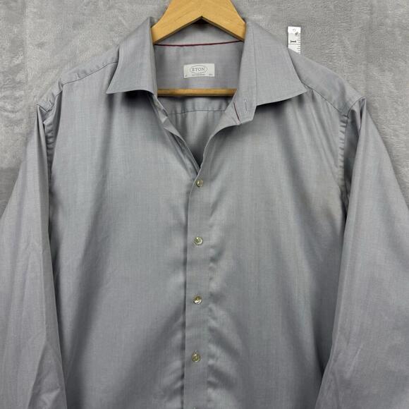 Eton Contemporary Fit Dress Shirt Gray Herringbone Cotton Men Size 18.5 47 ‘Read