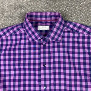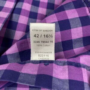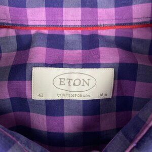 Eton Contemporary Shirt Men's 42 16.5 Purple Pink Gingham Check Plaid Cotton