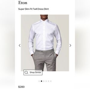 "Complete sleek tailored ensembles with this pristine cotton shirt from Eton. The crisp design is constructed with an extreme cutaway collar that nicely complements a robust neck tie. It's cut in the Swedish label's super slim fit for a streamlined look that's unquestionably modern."
