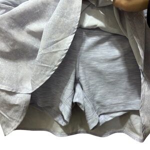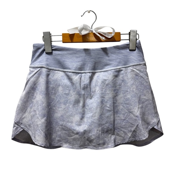 Features a light lilac purple and subtle pattern, built-in shorts, and a soft, stretchy waistband for an easy, flattering fit. Perfect for tennis, golf, running, workouts, or casual athleisure looks. Has a small pocket in the back!