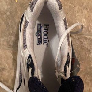 Etonic Stable Pro V Stable Air Runners brand new with tags. Men's shoes in Size 8 EE ithat are white, gray and navy in colour. These shoes have 3M Scotchlite reflective material that increases your visibility at night. Etonic is one of the leading manufacturers of running and walking shoes. Colour depends on device/screen settings and lighting in pictures. All items are from my smoke free home.