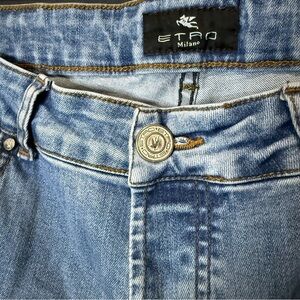 Experience timeless style with these Etro blue straight jeans, featuring a classic straight-leg cut and a vintage-inspired wash. The subtle variations in the blue denim add a touch of dimension, making them a versatile addition to any wardrobe. Perfect for casual outings, these jeans offer both comfort and a sophisticated look.