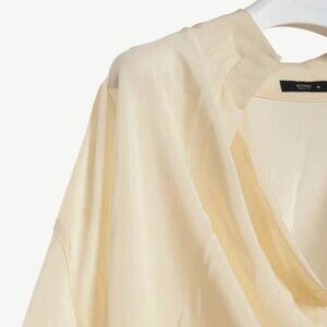 Expertly crafted from luxurious cream silk, the Etro tunic adds a touch of elegance to any wardrobe. The flowing cowl neck and gathered sleeves not only adds a chic touch, but also provides a flattering fit. Elevate your style with this timeless piece.