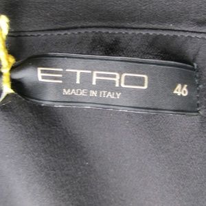Add a touch of elegance to your wardrobe with this stunning Etro long dress. The dress features a solid pattern and a straight across neckline with a zip closure. The sleeveless design and backless style make it perfect for any party or cocktail occasion. The dress is made of 100% silk crepe and comes in a beautiful black color. The dress is available in size 10 (US 46 IT) and is perfect for any season - summer, fall or spring. The dress is designed with the brand's signature style and is perfect for any fashion-conscious woman. Get your hands on this beautiful dress today and add a touch of sophistication to your wardrobe.