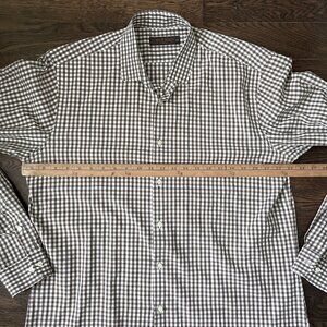Selling an Etro Men's 100% Cotton Brown White Checkered Plaid Button Up Shirt-Sz. 43 (XL). Made in Italy. This is a luxury men's shirt . Gently used.