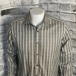 The Etro Milano Casual Button Down Shirt for men in EU 41/US L is a stylish and versatile addition to any wardrobe. Made of lightweight cotton knit fabric, this black shirt features a geometric check pattern, collared neckline, and button closure. Perfect for various occasions including casual outings, parties, weddings, and business meetings, this spread collar shirt is designed for all seasons with a regular fit and long sleeves. The Etro Milano brand is known for its Italian craftsmanship and unique designs, making this shirt a hipster, designer, and trendy choice for the fashion-forward man.