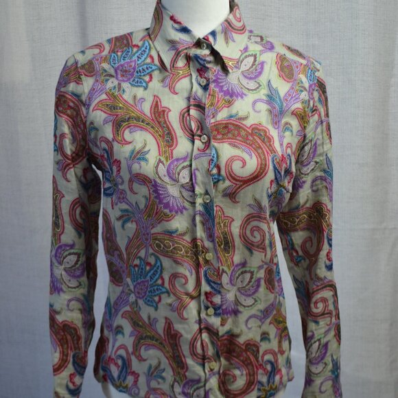 Etro Women's 100% Linen Paisley Button-Up Shirt - Made in Italy (Size 42)