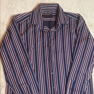 Etro sz 41 Classic Striped Button-Down Shirt in Blue Purple and Red