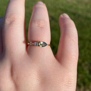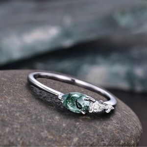 Etsy Moss Agate Ring, Pear Cut w 3 Gemstones, 925 Sterling Silver, Size 4 1/2