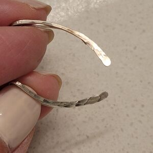 The earrings are handcrafted from a hammered Sterling Silver wire.