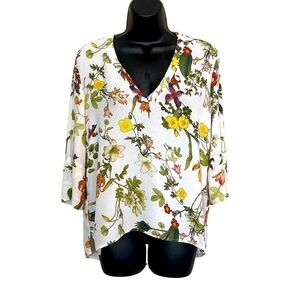 Euc Zara Woman 3/4 sleeve top, floral, v-neck, white/multicolour, size Small.