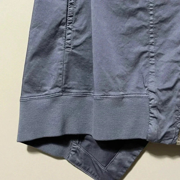 New! Made in Italy. Lightweight Cotton blend. Blue/ Gray colour. Front functional pockets. Full zip closure. Ribbed collar, sleeve opening, hem. Back angled cutout with slit.