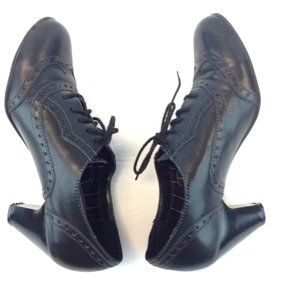 Eurostep 'Gabrielle' Black Leather Retro Rockabilly Pin-up Heels.