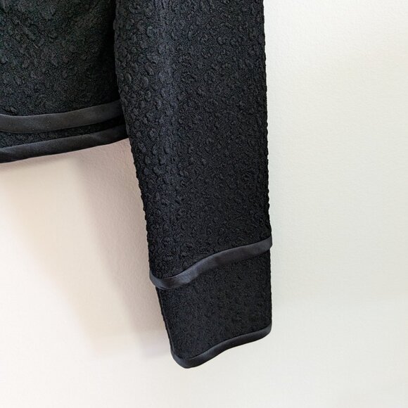 Established in L.A. in over 20 years ago, Eva Varro is known for her handcrafted garments which are both stylish and wrinkle-free using a durable fusion of high-quality fabric fibers. Made with her signature Black Pebble fabric, this vintage version of her Coco Jacket is as pristine a day one. This was a gift to myself…and I no longer fit in it, so it’s time for its next chapter! Perfect for an evening out... or a day at the office. Pictures do not do this jacket justice!